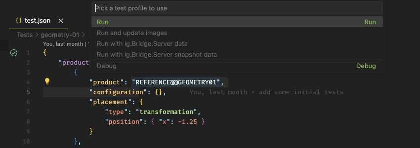 The extension supports multiple execution profiles for tests. You can choose the execution profile to use by right clicking on the test icon and then clicking on Execute using Profile....
